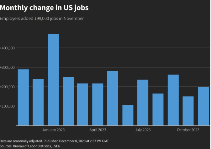 · 11月非农就业人数增加了199,000,共识是187,000人: